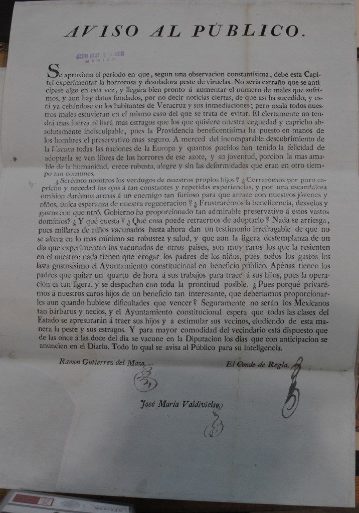 Este nuevo método llegó a Nueva España en la primera década del siglo XIX y aunque existen algunos trabajos sobre su recepción, todavía conocemos muy poco sobre el funcionamiento de las primeras comisiones encargadas de aplicar la vacuna. En este sentido, el caso de Veracruz y sus comisiones de vacunación en los años 1816-1817 me ha permitido identificar algunas de las dinámicas enfocadas a propagar la vacuna entre la población.